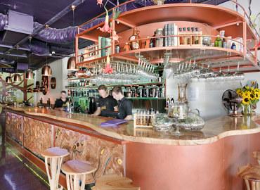 The fit-out of this bar was finished using recycled timber as feature walls and as part of the liquor display....